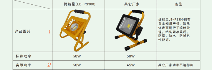 捷能星光電擁有比較強的研發實力,公司許多產品均為公司自己開發,從外殼到電路設計,由公司的機械工程師與電子工程師相互合作而完成。每一次新產品的問世都能在市場上擊不小的波瀾,這一次也不例外,新產品便攜式調光充電泛光燈(LB-PS200,LB-PS300)剛剛面世,就迎來了一年一度的廣州光亞展。展會上這款產品盡顯風采。眾多外國友人圍繞其觀賞,無不贊嘆。以下就來簡單說說這款產品的優勢: