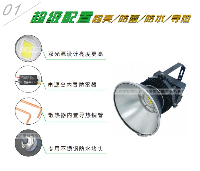 8.與鰭片散熱燈具相比更適合用于戶外,更加耐沖擊,抗雷擊性強,無紫外線(UV)和紅外線(IR)輻射。