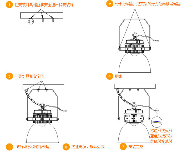 2.安裝燈具時,務必安裝安全鏈;