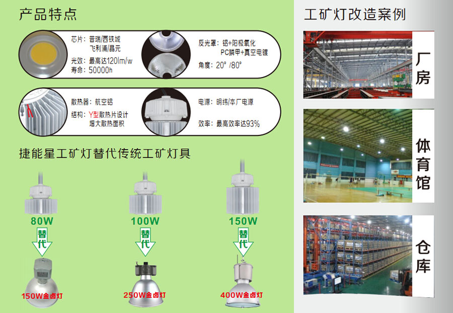 適用于造船廠,礦山,車間,廠房,庫房,公路收費站,加油站,大型超市,展覽館,體育館及其 它需要工礦照明的場所